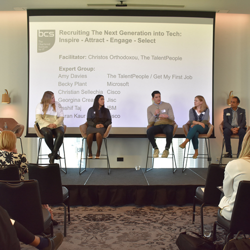 Getting young people into a career in IT was the subject of another panel, hosted by Christos Orthodoxou from TheTalentPeople and GetMyFirstJob. Becky King, the UK Apprentice Lead for Microsoft, said one of the main challenges faced by employers is a lack of awareness and understanding about digital apprenticeship programmes.